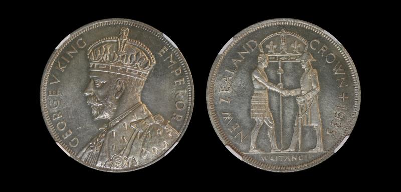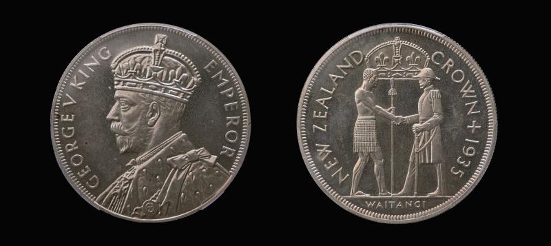 WAITANGI CROWN 1935, great fields with some minor bag marks in Obv, sharp strike & rim, NGC certified PF62. PROOF