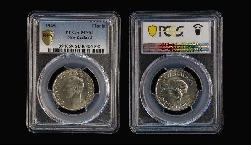 FLORIN 1945, minor bag marks only, one at eye on Obv, fully justifying the grade, PCGS MS64. BU