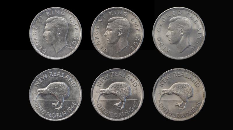 FLORINS (3), 1946 Round Back, AU; 1947, scarcity underrated in this grade, virtually UNC; & 1948, EF. EF - AU