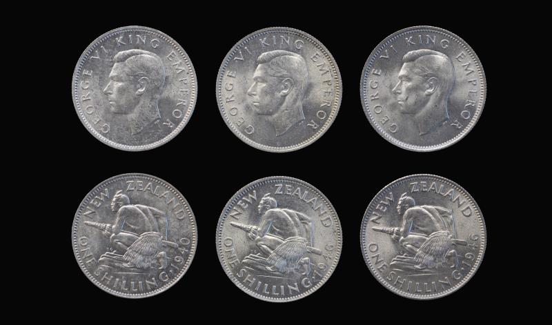 SHILLINGS (3), 1940, excellent rim, near UNC; & 1946 (2). UNC