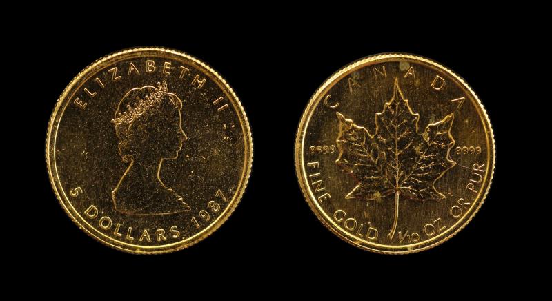 CANADA 5 Dollars 1987, km135, .9999 gold, 0.1 oz AGW, in plastic as issued. UNC