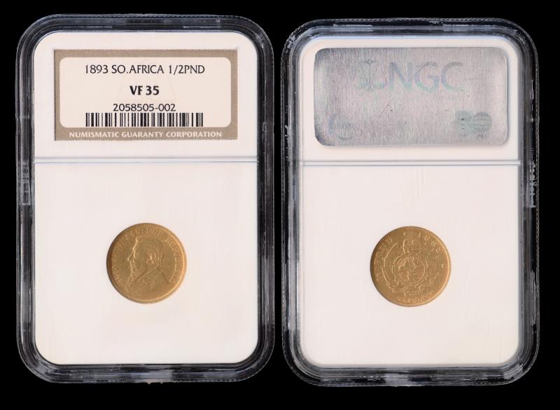 SOUTH AFRICA Half Pond 1893, Hern Z39, km9.2, good example of the rare, key date. NGC VF35. VF
