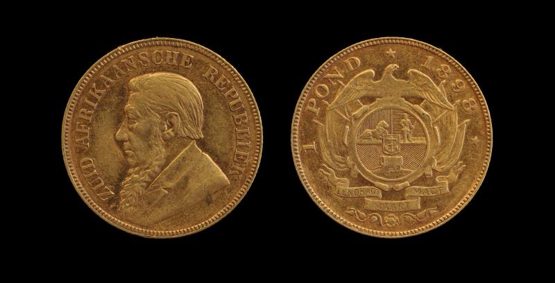 SOUTH AFRICA Pond 1898, Hern Z51, km10.2, .916 gold, reddish tone, tiny e/ks. F