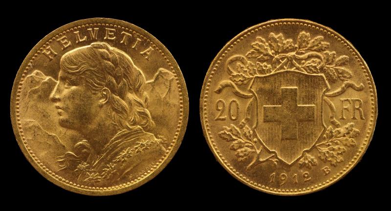 SWITZERLAND 20 Francs 1912B, km35.1, .900 gold, .1867 oz AGW. AU