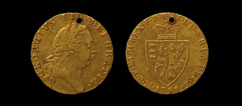 GUINEA George III 1789, S3729, scr's Obv & Rev, holed otherwise VF.