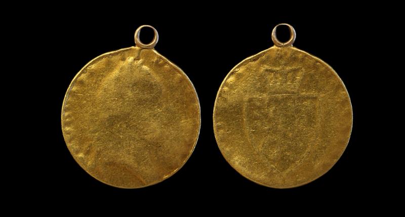 GUINEA George III 1790, Spade shield type, S3729, 7.7g, pendant loop mounted. POOR