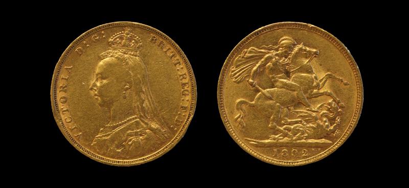 SOVEREIGN 1892, S3866C, r/n's, Obv two e/k's. F