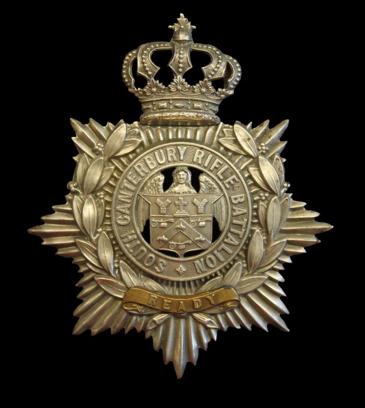 NZ Helmet Plate, South Canterbury Rifle Battalion, OLD2/145. EF