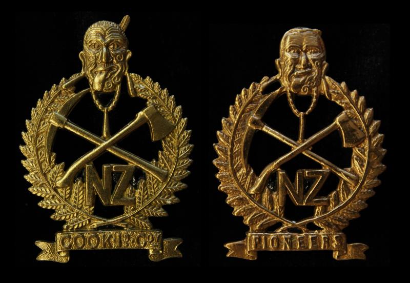 NZ cap badges (2), Cook Islands Company, OLD4/260, gEF; & Māori Pioneer Battalion, OLD4/287. EF