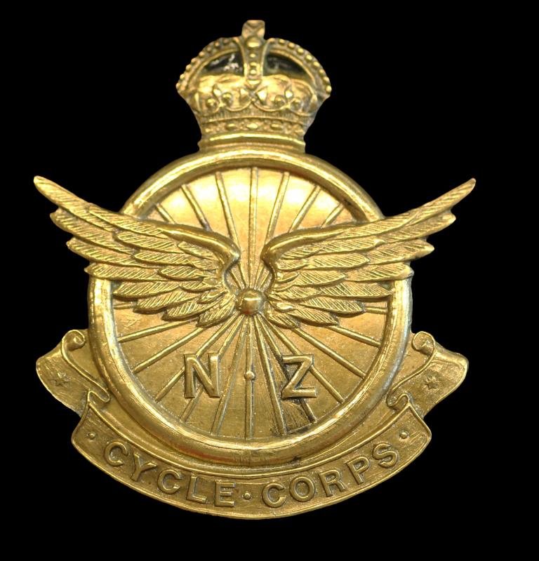 NZ cap badge Cycle Corps, OLD4/265, lugs intact but bent, otherwise EF.