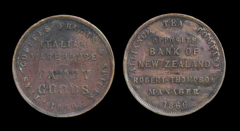 ALLIANCE TEA COMPANY Penny 1866, Christchurch, A7, cleaned, e/k's, some verdigris. aVF