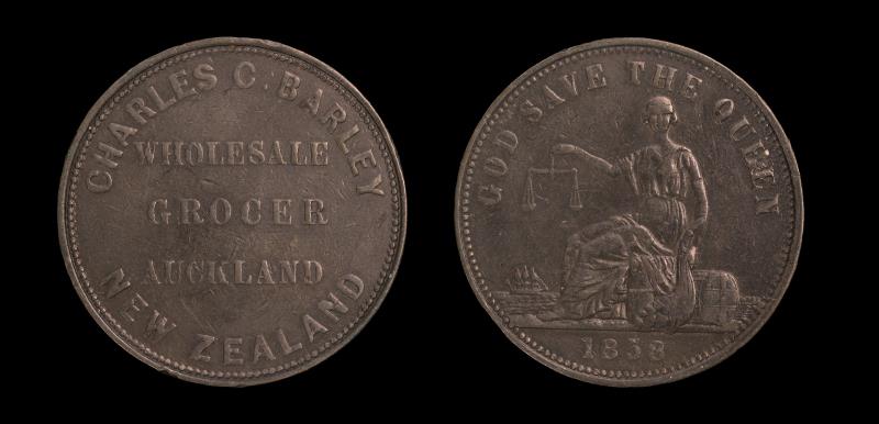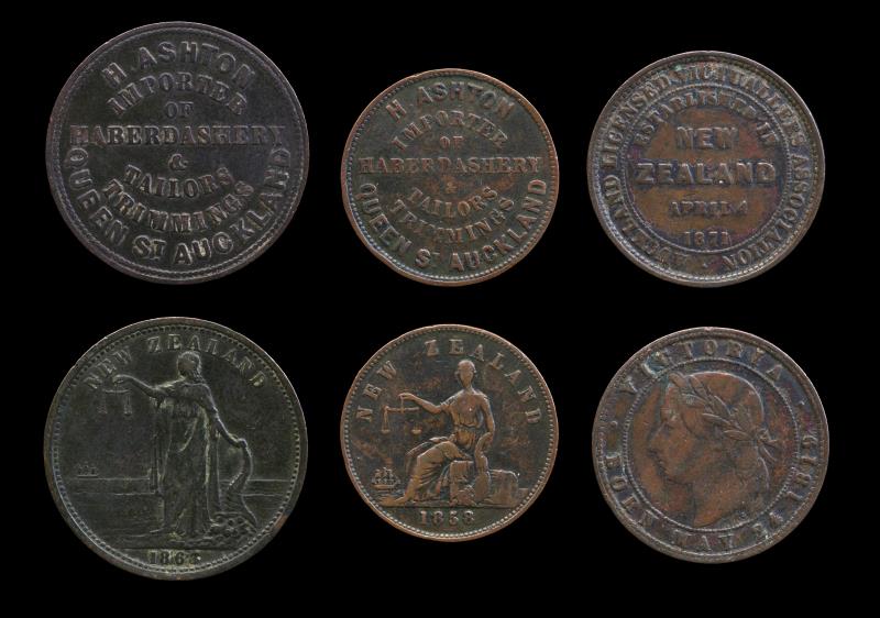 NZ (3), H ASHTON (2), Penny 1863, A22, VF & Halfpenny 1858, A19, F; & Auckland Licensed Victuallers, Penny, A326, gF. F - VF