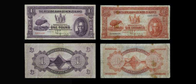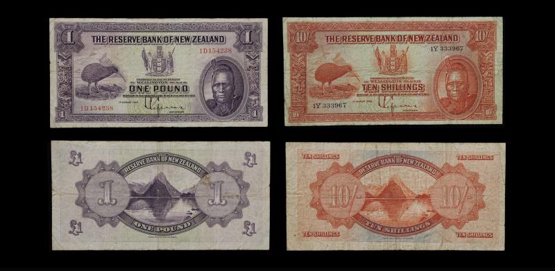 1934-40 LEFEAUX (2), One Pound, s/n D 078426, F; & Ten Shillings, s/n 7Z 694750, many folds & creases, a few small holes, G. G - F