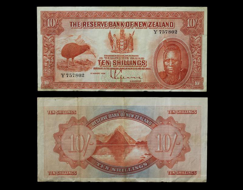 1934-40 LEFEAUX Ten Shillings, s/n Y 757802. gF