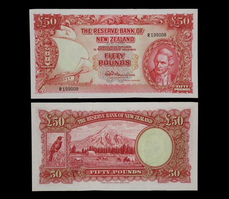 1956-67 FLEMING Fifty Pounds, s/n R 199008, RBNZ remainder from last thousand, usual band marks, small crease top margin. AU