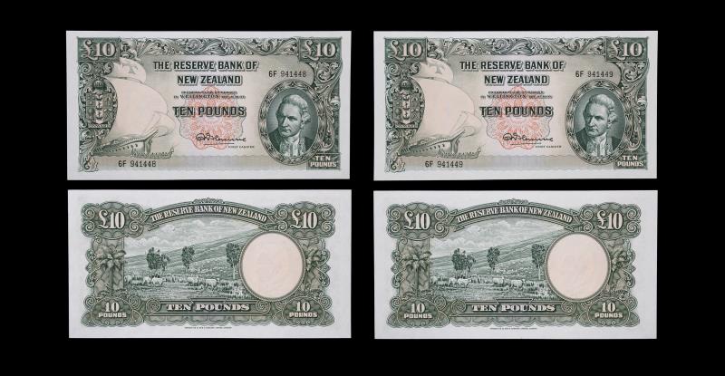 1956-67 FLEMING Ten Pounds (2), first prefix s/n 6F 941448 & 49, consecutive pair, teller flicks. AU