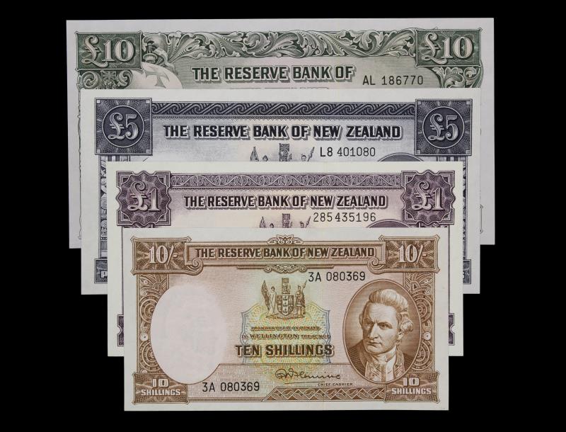 1956-67 FLEMING (4), Ten Pounds AL 186770, EF; Five Pounds L8 401080, UNC; One Pound 285 435196, AU; & Ten Shillings 3A 080369, EF; all with security thread. EF - UNC