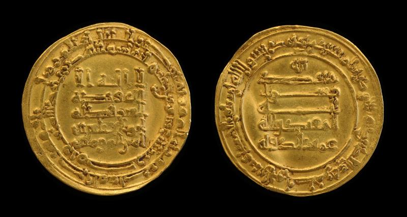 ABBASID, al-Muqtadir, Gold dinar, AH320 (932 AD), Misr (Egypt) mint, with names of his heir Abu'l-Abbas & vizier al-Dawla, A-248, 25.1mm, 3.96g, scarce, slightly bent, otherwise VF.