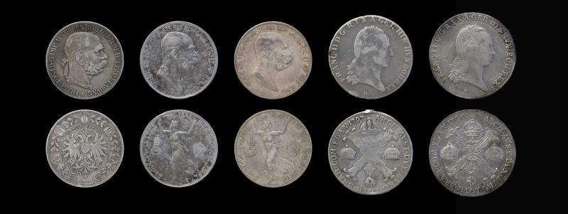 AUSTRIA & AUSTRIAN NETHERLANDS (5), Austria 5 Corona (3), 1900, km2807, F; 1908 (2), km2809, one toned, aVF & VF; Austrian Netherlands Kronenthaler (2), 1796B, km62.2, gF; & 1796H, km62.1, Ex mount, G; total 3.73 oz ASW. G - VF