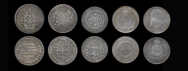 BRAZIL (5, all silver), 960 Reis (2), 1815B, km307.1, bend, toned, VF; 1822R, km326.1, gF; 640 Reis 1825R, km367, 2mm off centre strike, scr, F; 2000 Reis (2), 1856, km466, EF; & 1889, km485, EF. F - EF