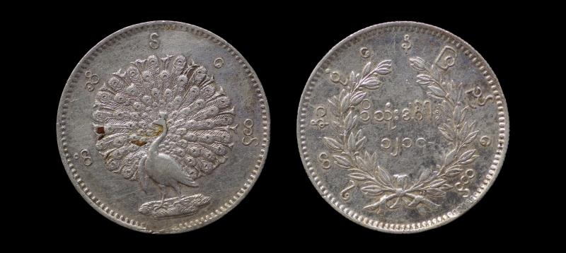 BURMA (Myanmar) Kyat/Rupee, CS 1214 (1852-3 AD), km10, cleaned otherwise VF.