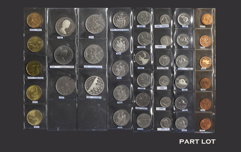 CANADA 2 Dollars - 1 Cent (495, 9 silver), 1965-2022; 2 Dollars (40), 1996-2022; Dollar (70), 1974-2021; 50 Cents (59, 1 silver), 1977-2022, incl 2006, km494a; 25 Cents (149, 5 silver), 1973-2020, incl 1997, 1998, 2000, 2001 all km184a, & 2006, km493a; 10 cents (53, 2 silver), 1977-2020, incl 2001, km183a, & 2006, km492a; 5 Cents (68, 1 silver), 1965-2022, incl 2006 km491a; Cent (56), 1969-2022; 1.456 oz ASW, few with toning, housed in Numis albums, with Vendor IDs, a true numismatic collection incl UNC, PROOF, Commemorative, & Colourized issues. VF - PROOF