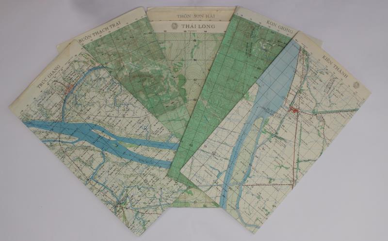 VIETNAM WAR MAPS (6), US Army Maps of South Vietnam locations, 1/50,000 scale, L7014 & L7015 Series. incl Kon Giong, Kien Thanh, Buon Thach Trai, Truc Giang, Thon Son Hai, & Thai Long. VF - EF