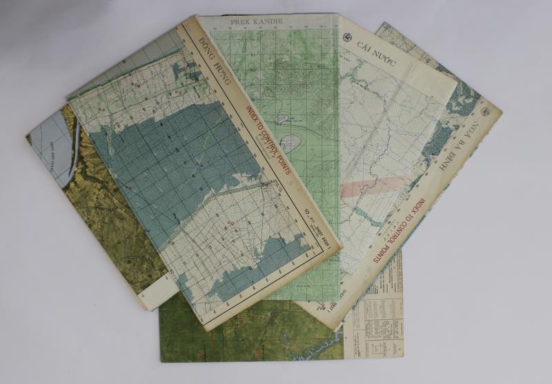 VIETNAM WAR MAPS (6), US Army Maps of South Vietnam locations, labelled ‘Confidential Modified Handling Authorized, ‘Index to Control Points’ (2), incl Nga Ba Dinh, Dong Hu’ng; Photomap "Song Vam Co Dong River"; Pictomap Supplement Sheet 6029, Series L8020 Song Han Giang River; Cai Nuoc (Vietnam) large ‘X’ across map (Vietnam), Reverse Quan Tre (Vietnam) monocolour; & Pictomap Ban Laongam (Laos), Reverse Prek Kandie (Cambodia).VF - EF