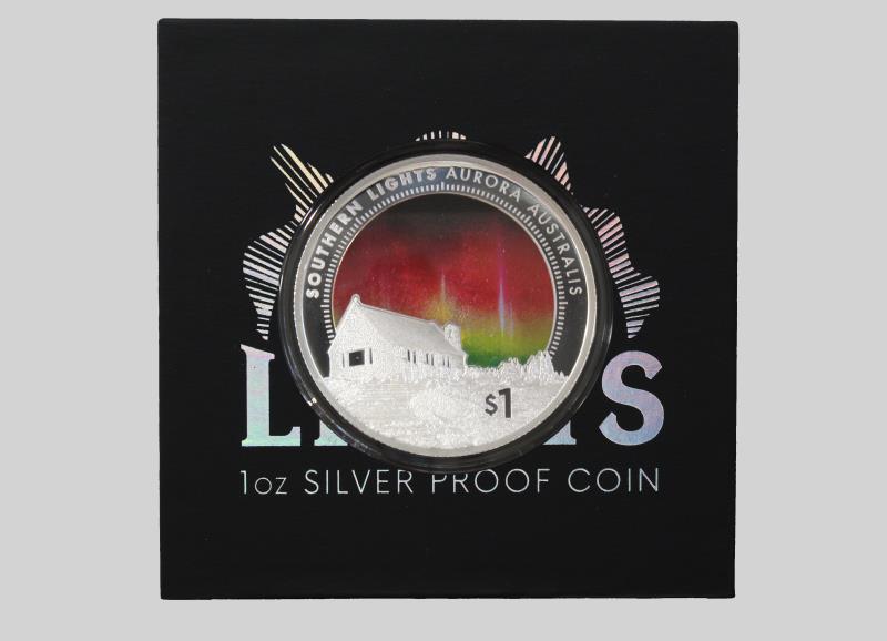 PROOF $1 2017 Southern Lights, .999 silver, 1 oz ASW, cased with cert, holographic.