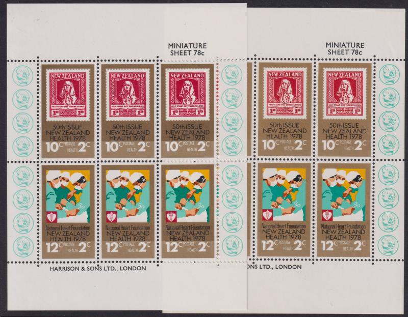 1978 Health stamps & Heart Foundation m/s with doubling of red colour on all stamps (with normal). RPSNZ cert (2010). CP TM50w. Cat unpriced. MUH.