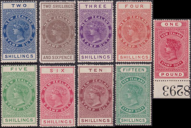 1882-1925 2/-, 2/6d, 3/-, 4/-, 5/-, 6/-, 10/-, 15/-, £1. Jury cat $6175. Mint.