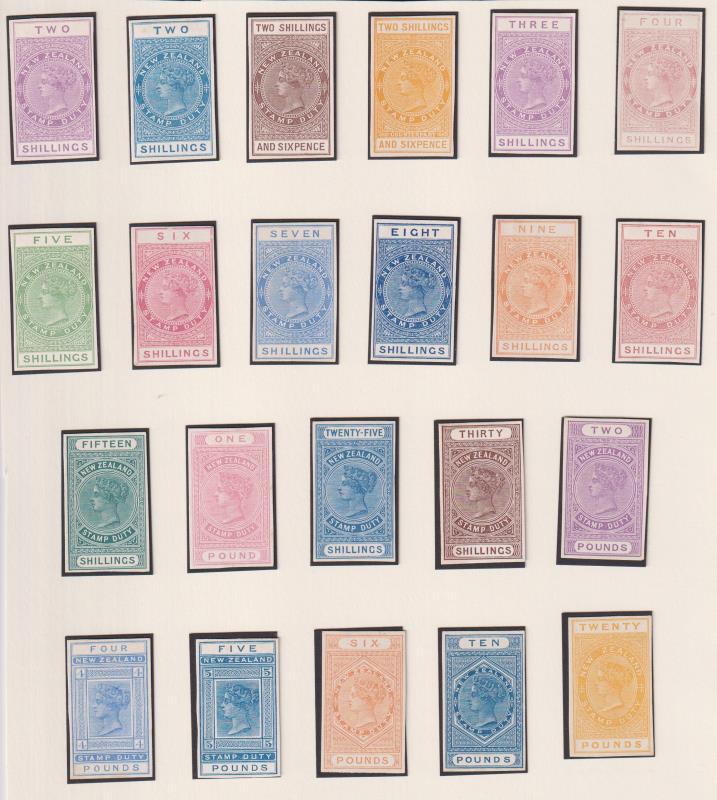1882 Stamp Duty x 22 plate proof singles to £20, printed on thin card. Comprising 2/- purple, 2/- blue, 2/6d brown, 2/6d yellow counterpart, 3/-, 4/-, 5/-, 6/-, 7/-, 8/-, 9/-, 10/-, 15/-, £1, £2, 25/-, 30/-, £4, £5, £6, £10, £20. Lovely group. Remarkable assembly.