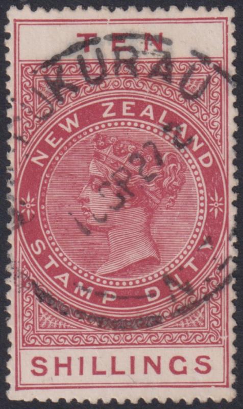1927 10/- maroon, Cowan reverse wmk paper, p14½ x 14, part Waipukurau SEP 1927 cds. CP Z12n. Cat $700. FU.