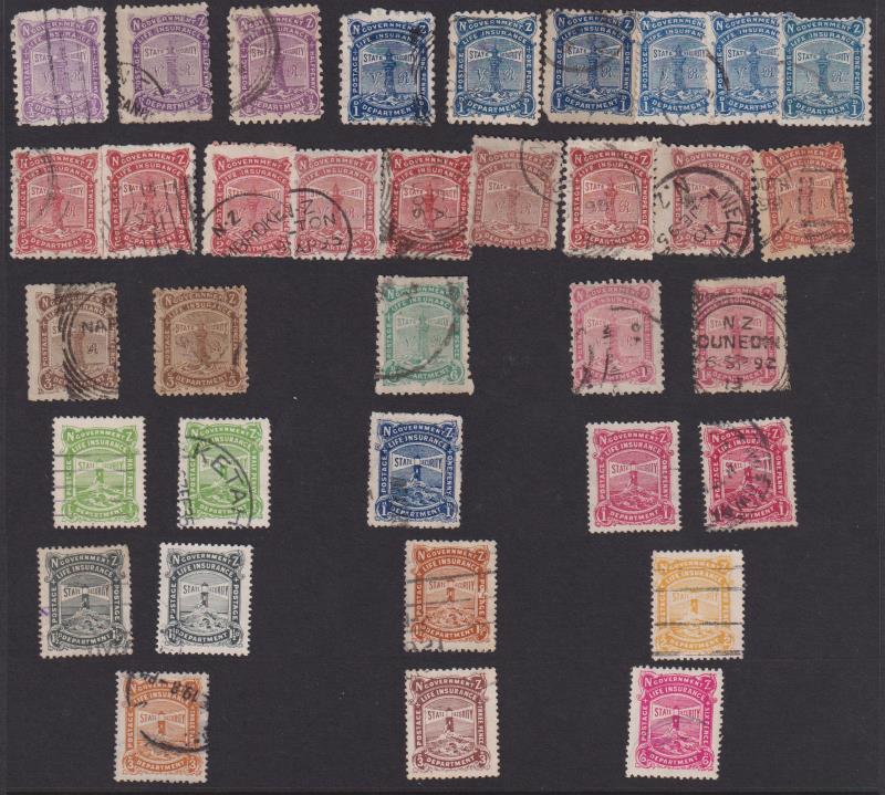 1891-1905 seln of 35 used on Hagner. Incl VR 3d x 2, 6d & 1/- x 2 & no VR 1d blue, 3d yellow-brown & 6d. CP cat $1400+. GU/FU.