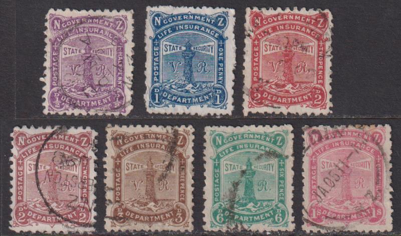 1891 ½d - 1/- VR set of 7 incl the scarce 2d chocolate-brown shade, all w/c & with cds (½d, 2d, 1/- dated). Jury cat $850+. FU.