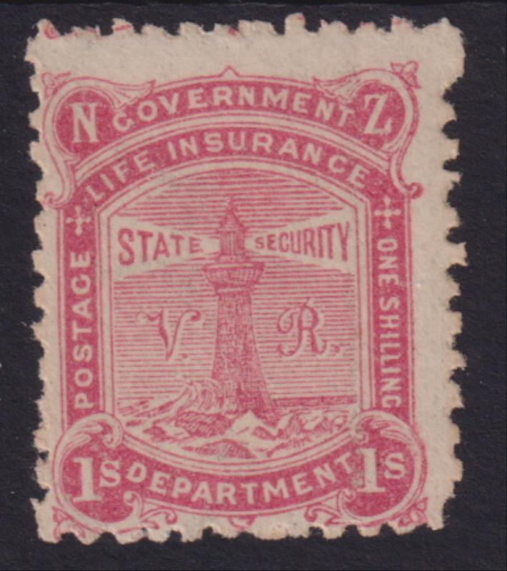 1891 1/- VR rose, o/c, one corner pulled perf. CP X6a. Cat $4500. MUH.