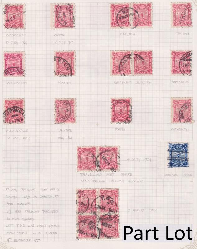 1905-40s colln of 253v on 13 pages, mostly FU. Noted 1d blue & 2d chestnut (latter damaged & not counted in cv). Also many attractive cancels incl from small towns such as Colyton. Dupn (eg 2d purple x 25!) & generally fine cond. Jury cat $3500+.