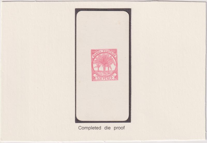 Samoa 1886 Palm Trees completed die proof of the 6d in rose-pink by Cousins.